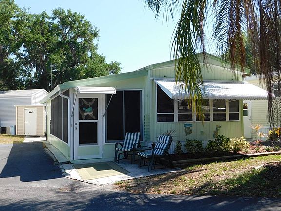 *****CALL FOR AN APPOINTMENT TODAY*****This is a renovated and updated, furnished turnkey 2 bedroom 1 1/2 bath home in a riverfront community on the Braden River. The main side of this unit have new laminate floors, refinished kitchen cabinets, news blinds throughout, Wainscoting and chair rails in living room and dining room, totally painted and beautifully redone. The add side was completely remodeled and now has an entry foyer, bedroom, brand new 1/2 bath and laundry room with stackable washer/dryer with 2 yr warranty. All blinds throughout are new. Home has been painted inside and out and all was redone between August and November of 2020. Has an All Weather roof which provides amazing insulation for energy efficiency and noise abatement. You come in to a large entry foyer and step up into the Living Room-sofa, loveseat, coffee table and TV. Beautiful laminate floors. Ceiling Fan for comfort. Dining Room-Table and 4 chairs. Kitchen-Full size gas stove, refrigerator, free standing microwave, toaster oven and Keurig coffee maker. Hallway-pantry and 6 drawers and 2 cabinets for storage. Bathroom-corner tub shower combo, vanity and linen closet. Plenty of storage. Bedroom-Queen bed with two night stands and lamps. Side by side closet with 8 drawers underneath. Built in dresser and built in vanity/desk with drawers and cabinets about. TV stays as well. Ceiling Fan for comfort. 2nd Bedroom-has a day bed trundle for guests with new mattresses. Large closet. Vinyl windows and screens. TV in this room too. Ceiling fan for comfort and carpeted flooring. Guest Half Bath-all is new and perfect for your guests. Laundry Room-stackable washer/dryer. This home has a two car driveway and a retractable awning in the back to cover your golf cart. Shed-6x8 and will hold plenty of stuff in storage. New back deck and open patio in the back. Has a front paver patio as well. Newly landscaped and unit has 5 awnings. This is a lovely weather front unit furnished beautifully and you won't want to miss this one!! A 55+ riverfront community that has their own island accessible by foot, bike or golf cart with boat dock and fishing dock and a screen large pavilion with grill and a gazebo. Lots of trails to ride or walk. Enjoy the pool, private gym, pickle ball court. petanque, horseshoes, billiards and darts. A very, very active community. One of the best kept secrets just off SR 70 in Manatee County. **All listing information is deemed reliable but not guaranteed and should be independently verified through personal inspection by appropriate professions. Lighthouse Mobile Home, LLC cannot guarantee or warrant the accuracy of this information or condition of this property. The buyer assumes full responsibility for obtaining all current rates of lot rent, fees, or pass-on costs associated with the community, park or home from the community/park manager. Lighthouse Mobile Home LLC is not responsible for quoting of said fee