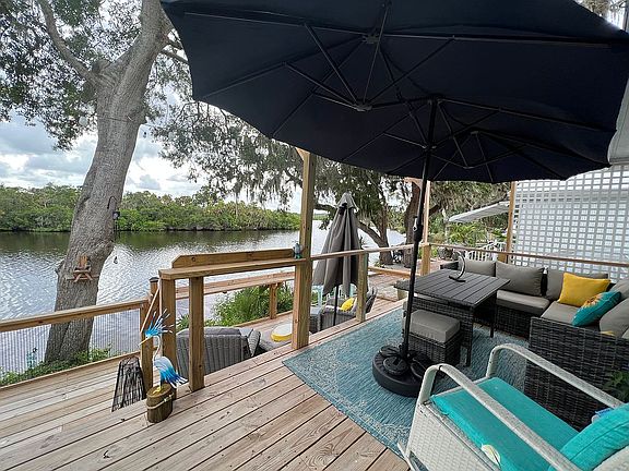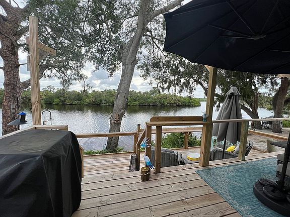 The most amazing views on the Braden River! You are riverfront on this mobile home! This is also a gated community.. This Home has been completely remodeled from the inside out. Everything is brand new! New plumbing, new electrical, new walls, new ceilings, new floors, brand new kitchen, brand new bathroom, new fixtures, new lights, brand new double deck outback overlooking the Braden river, brand new front deck out front surrounded by pavers. The siding is also brand new. All of the windows are brand new, all of the doors are brand new! This property is currently a 1 bedroom 1 bath and an office. This property can easily be made back to a 2 bathroom , we made the 2nd bathroom into a walk in closet, but all the plumbing is still there if you want an another bathroom. This is a land leased property you do not own the land. The lease rent is $1029 a month it includes landscaping, Wi-Fi, and all the amnenities..water is discounted and is only $11 a month. Where can you get a Waterfront property for a little over $1000 a month? There are many activities in this 55+ community that are planned. You could be as busy as you want! This community is also dog friendly, and has two dog parks. There is a beautiful resort style pool, Pickleballbcourts, a fitness center, horseshoes, shuffleboard, a library, a card and billiards room! This is a great area close to shopping and restaurants and I 75 and the newly opened 44th Ave. west that takes you from West Bradenton all the way out to Lakewood Ranch. Come see this amazing property today! You will not be disappointed!