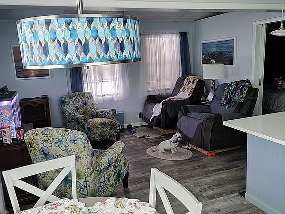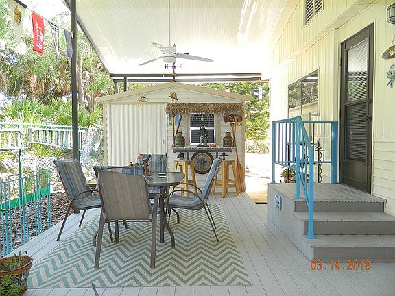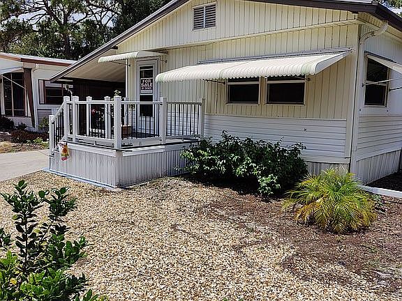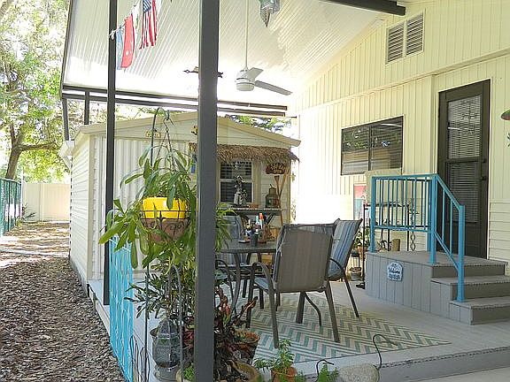 *****CALL FOR AN APPOINTMENT TODAY*****This is a very nice 2 bedroom 1 1/2 bath home with updates in a beautiful riverfront community with access to the Braden River. Some of the improvements include All Weather Roof over home and carportand back porch all new electric and water along with new 40 gallon hot water heater,waterproof laminate flooring,walk in tile shower with glass sliding doors ,refrigerator in 2020,new stove and microwave in 2022 when this home was completely remodeled,Ceiling fans for comfort. Dining Room- open concept with room for table and chairs. Kitchen - full size electric stove, new refrigerator in 2020, built in microwave. Double sink with updates hardware. Lots of oak cabinets with Corian countertops . Hallway-Pantry/closet and 4 drawers. Lots of storage here. Bedroom- 1 bedroom with a built in queen base with lifts top for storage underneath. Built in dresser with 3 drawers. Side by side large closet with 6 drawers below.Ceiling fan for comfort. Waterproof laminate flooring in 2022 Ceiling fan for comfort. Half bath-contains laundry room-washer, dryer, comfort height commode, high vanity and sink. Covered back deck-large & backs up to perimeter of park so very private. Plenty of room for entertaining- Shed-under cover here as well-it is large and has room for a refrigerator. There is a small Tiki bar shelf on outside of shed for entertaining as well. Large, long driveway with carport all the way to the back. You have no neighbor on one side here so very private. A great home in a great community so call for an appointment today!! A 55+ community that has their own island accessible by foot, bike or golf cart with boat dock and fishing dock and a screen large pavilion with grill and a gazebo. Lots of trails to ride or walk. Enjoy the pool, private gym, pickle ball court. petanque, horseshoes, billiards and darts. A very, very active community. One of the best kept secrets just off SR 70 in Manatee County. **All listing information is deemed reliable but not guaranteed and should be independently verified through personal inspection by appropriate professions. The buyer assumes full responsibility for obtaining all current rates of lot rent, fees,associated with the community, park or home from the community/park manager.