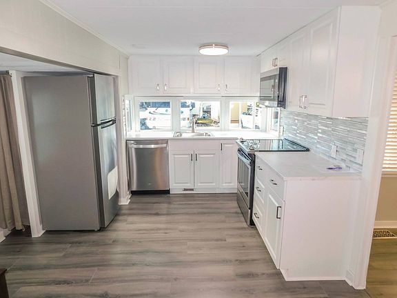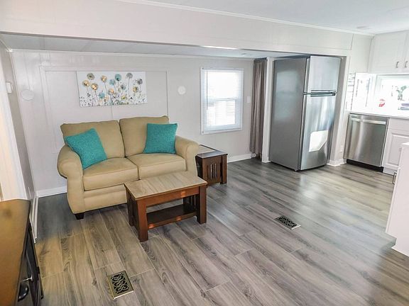 ** Exclusive Listing! Age 55+ Land Lease Community with $845 monthly lot rent. Contact listing agent below for ALL showings and offers.** Here's the one you've been looking for, this freshly updated and picture perfect 1983 converted travel trailer that has everything it takes to be your Florida getaway or your year round piece of paradise! Priced right at $49,900, this pretty home, with the additions and slide-outs, offers an approximate total of 560 square feet of interior living space, with two bedrooms and one bathroom. It is in excellent condition, immediately available, and will be sold mostly furnished, so you will have a generous head start on moving day! Your new home is located in Horseshoe Cove RV Resort of Bradenton, a very active, fun, and welcoming 55+ community near all the best of Central Florida. The monthly lot rent of $845 includes lawn care and trash removal. You're going to love living here, so call today and let us help you make it yours! 2022 UPDATES: Kitchen appliances, cabinets, counter tops; laminate flooring, interior paint, commode and vanity, interior doors This is a converted travel trailer home on leased land. The monthly lot rent is $845. The land/lot is not included with the sale.