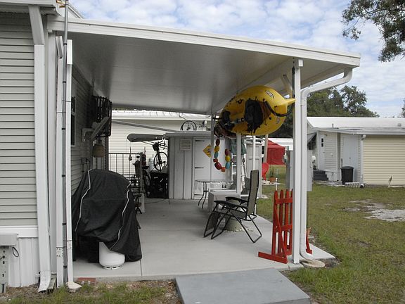 Offered for sale is a beautiful newer (1995) furnished Summerset H.U.D park model in an idyllic 55+ established friendly RV park with GREAT amenities, minutes from beaches, I-75, great shopping and restaurants. This unit is vinyl sided, with two bedrooms and 1.5 baths, perfect for visitors, or use the second bedroom for an office or hobby room! It has an insulated membrane roof, 6x8 newer electrified shed with, three new aluminum awnings and new covered, concreted back patio. The unit also has a laundry room (complete with washer and dryer) and a four season lanai. This park model is 42'x12' and the lanai is 35'x10'. New flooring throughout, ceiling fans, full size electric stove and refrigerator. New concrete in front for golf cart parking or just sitting out. Priced to sell at $52,900. Custom golf cart available. Please email for an appointment to see this beautiful vacation or full time home. Hurry it won't last at this price. Units are selling quickly. Availability negotiable .