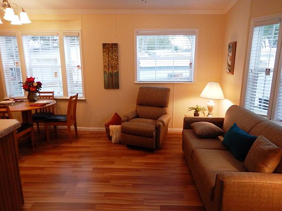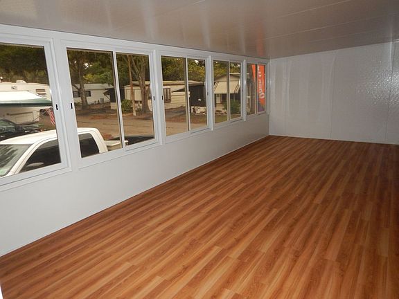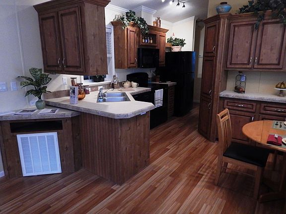 This premimum Jacobsen home offers drywall throughout the home and painted accent walls in the dining area, kitchen and bedroom. The L-shaped kitchen and glass doored hutch offer tons of storage in the kitchen and dining room. The bathroom has a glass shower door and plenty of counter top. The bedroom features his and hers closets with additional storage over the bed. The Florida room is raised and boasts glass windows with loads of space for entertaining. Call today for more information or to set up a tour.