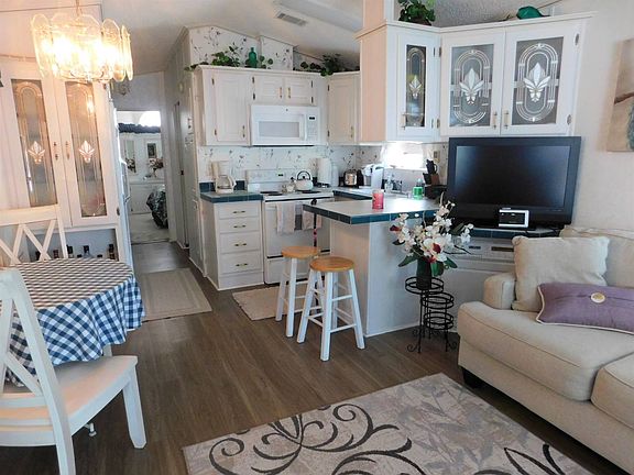 *****CALL FOR AN APPOINTMENT TODAY***** This is a large 1 bdrm 1 and a half bath with double add located right by the pool, clubhouse and fitness room. On a quiet street in a riverfront community and it is all about location, location, location and this one is it!!! Living Room- Laminate Floor and gorgeous area rug, New sleeper sofa and chairs, wicker end table, lamps and TV on corner stand. Ceiling Fan for comfort. Dining Room-Laminate floor. Table & 2 chairs, 2 bar stoors at breakfast bar and end cabinet for lots of storage. Kitchen-Electric Stove, side by side refrigerator, built in microwave new in 2019, garbage disposal and dishwasher which is a major plus. Hallway-has tons of cabinets all the way down the hallway so storage galore which is another major plus. Bathroom-laminate floor, tub/shower combo, comfort height commode with cabinets above and a large vanity. Bedroom-this bedroom is large and would even accommodate a king bed with no problem. Carpet - 2 side by side closets with 6 drawers under each. Built in dresser with 5 drawers & cabinet. Built in very large vanity with drawers and cabinets above. An amazing bedroom. Ceiling fan for comfort. Enclosed Florida Room-has a sleeper sofa, 2 swivel recliners, table w/4 chairs & TV with stand. Carpet. A wonderful room to entertain your friends!! Laundry Room/Half Bath-inside laundry with washer & dryer is a plus and a half bath in this room so the add side could be used as privacy for your guests with their own half bath. Has a comfort height commode and Vanity with sink. Raised covered deck so coffee here in the morning is nice and peaceful. Also has an open patio. Shed-with electric. There is a driveway and carport to cover your car. This has a comfort cover roof (2018) so no expense here. New flooring in 2018. New hot water heater 2018. New microwave and garbage disposal. This one even has a portable fireplace for ambiance. A wonderful, clean, well kept unit so you do not want to miss seeing this one!!! Call today!!! This is in a 55+ gated park with lots of amenities. There is a pool and hot tub, club house, corn hole, petanque, horse shoes, bocce ball, shuffleboard, fitness center, library and lot and lots of planned activities and clubs, including bingo. They have their own wood working shop and stained glass studio. This park also has their own private island, accessible by golf cart, bike or walking. There is a 300 person screen pavilion with a gas grill and outside seating available too. There is a gazebo, walking and biking trails, and a boat dock and fishing dock. Storage for boat trailers, kayaks and canoes is also available. This park is located just off of SR70 and is a prime location to access shopping, fine dining, and easy access to I75. A short drive to our award winning white sand beaches. It is all about location, location, location!! This is truly the best kept secret in Manatee County!! You must see this one!!! "All listing information is deemed reliable but not guaranteed and should be independently verified through personal inspection by appropriate professionals. Lighthouse Mobile Home LLC. cannot guarantee or warrant the accuracy of this information or condition of this property. The buyer assumes full responsibility for obtaining all current rates of lot rent, fees, and pass-on costs. Additionally, the buyer is responsible for obtaining all rules, regulations, pet policies, etc., associated with the community, park, or home from the community/park manager. Lighthouse Mobile Home LLC. is not responsible for quoting of said fees or policies."