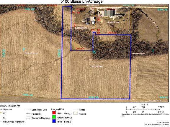 Acreage/farmland is currently being leased for crops. 13.35 acres (could be purchased in addition to 17.39 acres also currently being leased for crops. 13 Acres is NOT a buildable lot. 17 acres is a buildable lot. There is an easement diagram, under disclosures, on how to access the farmland. Also being sold, separately, in addition to acreage, is the home, at 5100 Blaise Lane, on 3.21 acres. Blaise Lane is a private lane, please contact your Realtor for a showing.