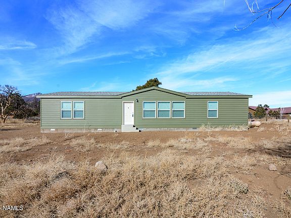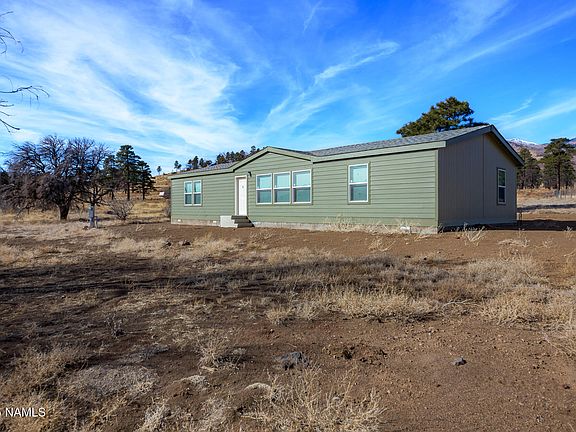 Brand new and ready for you! This 2024 Champion home offers a spacious 3-bedroom, 2-bathroom split floor plan with an open-concept design, perfect for entertaining. Situated on nearly 5 acres, this property provides breathtaking views of the San Francisco Peaks right from your backyard. An outdoor enthusiast's dream, head out the back of the property into the forest - enjoy hiking, horseback riding, and wide-open space for all your adventures. Ideal for animal lovers, this fully fenced property offers plenty of room for pets and livestock. Just 15 minutes from town, you'll have the perfect balance of privacy and convenience. Don't miss out on this incredible opportunity to own this new home, on land with unbeatable views!