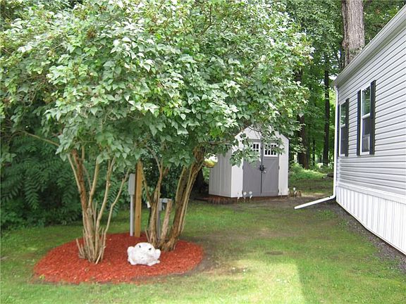Quality was built into this 2013 three bedroom, two bath mobile home. Solid wood cabinets in kitchen with formica counter tops, breakfast bar area, and black appliances. Master bedroom with lovely master bath. Side porch, deck, shed and beautifully landscaped partially wooded lot which backs up to 18 fairway of Terry Hills Golf Course