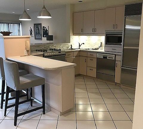 Primary bath has a heated whirlpool tub, steam shower with seamless glass enclosure. Room was enlarged during renovation and has, internet, phone and cable connections, Ceramaic Italian tile throughout unit friendly to disabled. Interior Design Services and Philadelphia design center oversaw the gutting and renovation. Distinctive modern door handles, custom closet systems in primary bedroom and hall closet. Open concept in kitchen/den/dining room/ living room, Not compartmentalized like the rest of the building. Recessed lighting throughout unit with dimmers. Gas cooking. Condo feel includes, cooking, heating, trash removal , water and basic cable. Designer vertical blinds in all rooms. Storage bin. Kitchen includes a sub zero refrigerator, Thermador gas stove and oven. Service contracts on washer and dryer. Wooden deck balcony. Unit is a one bedroom with den.