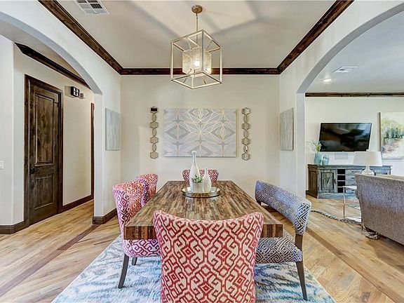 This stunning home located in Black Oak at Iron Horse Ranch is sure to please anyone with its fresh exterior and expansive interior on a wooded half acre lot (mol). Large open spaces make entertaining a breeze with formal dining room accessible from entry and living room open kitchen with island sink and pass thru pantry and a outdoor kitchen under a private covered patio. The master wing is fit for a King and Queen with a true sitting area, spa like bathroom with his and hers back to back vanities and not only is the master closet spacious, the shoe room is as well. The study is located close to the master bedroom and the downstairs features another secondary ensuite bedroom with walk in closet. The upstairs is well appointed with 2 bedrooms with bathroom access and an oversized bonus room with powder bathroom and dedicated media room. There is still time to make selections so don't delay! Please contact listing agent for showings Jennifer Fields Churchill Brown & Associates 405-412-2273