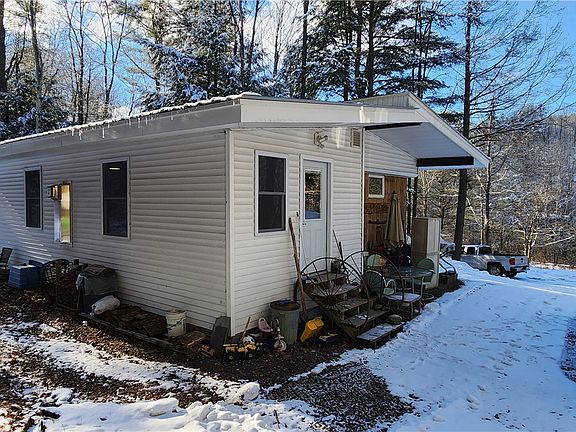 Rural secluded country residence on 17 acres located in Cohocton Steuben County NY. The manufactured home has one bedroom and one full bath with an eat in kitchen, living room area, as well as an add on family room with a propane stove. New wood ceilings have been installed and the interior was recently painted, this is a very well maintained structure. A small barn is present for storage along with a newer Amish built shed. There is a small fenced in coupe area with structures for domestic animals. The property has a scenic stream lined with Hemlocks running through the center. The balance of the property contains Maple, Beech, Birch, and Pine with some timber value present. Older trails meander through the property giving good access. The property is currently used as a full time residence but could be used as a recreational getaway.