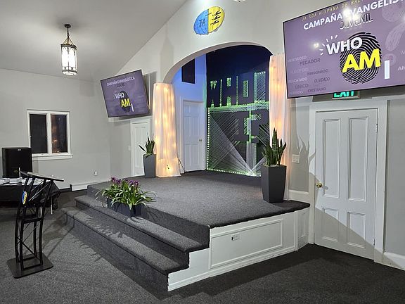 A beautiful and spacious Main Chapel for rent including fellowship hall. Fully furnished including utilities, with two bathrooms on the same floor and a large parking lot. It has three Smart TVs and Wifi. It's a church, commercial building. We have our own rules through the Conference.
