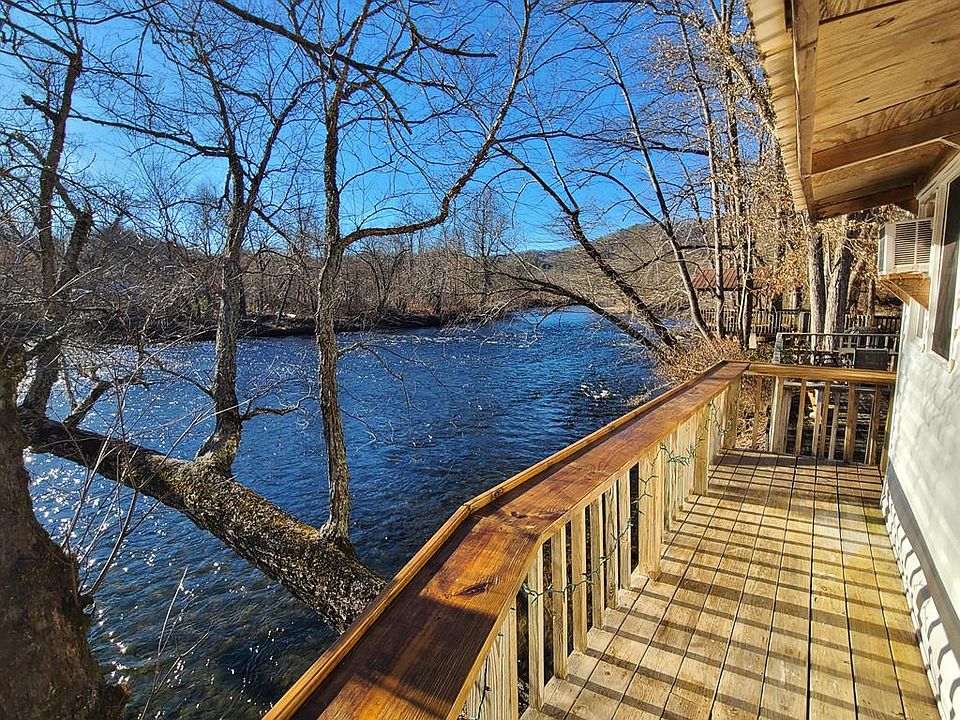 A cute park model is Right on the Tuckaseegee River. Located on a rented lot in Ela Campground that is only minutes to the Harrahs Cherokee Casino, The Great Smoky Mtn. National Park, The Blue Ridge Parkway, plus all Bryson City has to offer...Lake Fontana, downtown with many restaurants and shopping and the Great Smoky Mountain Railroad. The home has a big add-on in the back that is set up as an efficiency, with a kitchen and bath, plus a washer and dryer. Huge Porch to enjoy the sights and sounds of the river, or fish right off the deck on the back. Great getaway place or you can live here year-round. No subleasing and Cash only.