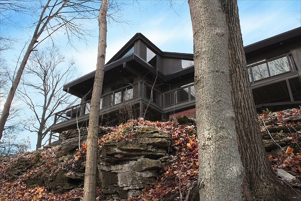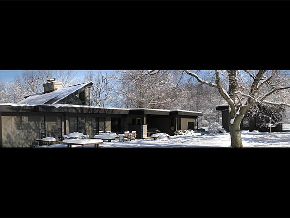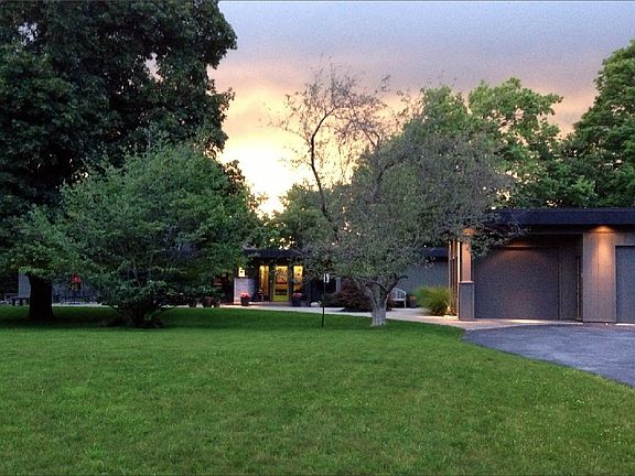 A winding, hillside drive opens to reveal stunning modern architecture on a large, private lot in the heart of Clarence, New York. Over 3,500 sq.ft of finished living space overlooking a beautifully unobstructed escarpment view. This midcentury, modern home is an exercise in simple lines and honest materials: limestone, redwood, concrete and glass. The exceptional design embraces it s expansive setting and it s ever-changing seasonal views. The front elevation presents itself as a modern ranch while the back opens up to a grand, two-and-a-half story, glass-faced masterpiece. Some of the highlights include a massive fireplace constructed of limestone salvaged from an original Clarence homestead, radiant heat-warmed concrete floors, walls of glass that open up to unobstructed panoramic views... and so much more for you to discover. A true work of art. - For even more details check out our website at www.5100GOODRICH.com*agents protected.