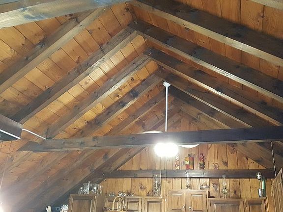 Unique property on Westside of Evansville. This home has gorgeous, vaulted ceilings with wood beams. Remodeled kitchen has new countertops, tiled backsplash and lighting. Lots of cabinets and plenty of courter space in the eat in kitchen. There is a cozy living room that leads to a deck overlooking park like yard. The spacious master bedroom has been remodeled and the master bath is a dream. Huge walk in tiled shower, lots of cabinets, double sinks and absolutely gorgeous! The other 2 bedrooms are also on the main floor. The second full bath on main floor is also nicely remodeled. The basement is a finished walkout. The family room is on lower level. The laundry room is huge! Could be used for extra storage, hobbies, toy room, office, home business, endless possibilites! There is another full bath on lower level, extra storage room, and another small finished room that is just waiting for your ideas. 30x40 pole barn with electric, water, concrete floor, skylights for extra light, and a 10 ft. overhang. There are almost 6 acres with this property, plenty of room to enjoy the deer, turkey and wildlife. The area in the back, on the South side of property is a perfect place to enjoy nature. There is another small building in the back pasture area. Country living at its best. Property is on German Township Water. There is a well on the property that has not been used in several years (unhooked to tap into German township water). No gas, all electric. Windows were just recently replaced by Champion. Front door replaced and gutters and downspouts were replaced. The stove in basement is not hooked up, may or may not work, no warranty on stove. One garage door opener works, one does not. The oversized garage has room for 2 cars and plenty of room for workshop, lawn mowers, rec. vehicles and more.