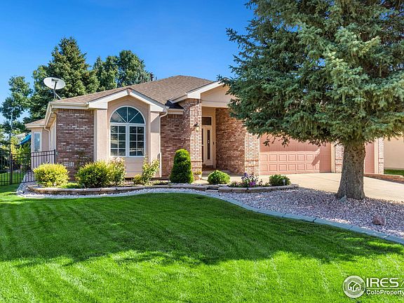 Discover a new level of luxury and comfort in this cul-de-sac property that features elegant designs, top-notch amenities, mountain views, a FOUR car garage with an RV door, and TONS of recent upgrades and improvements! Located next to Ptarmigan Country Club, a Jack Nicklaus Signature Golf Course, this open-concept home is a stunning display of quality craftsmanship enhanced by the vaulted ceilings, oak hardwood floors, new interior paint, and upscale finishes throughout. The living area showcases huge picture windows equipped with Honeycomb Cellular shades that provide insulation and noise reduction, and the custom brick fireplace is flanked by built-in shelving alcoves. The corner cabinet is plumbed for a wet bar. The remodeled gourmet kitchen boasts stainless steel appliances, granite countertops, a full tile backsplash, and a large pantry. The central island serves as both a practical workstation and adds to the generous storage space. Just off the kitchen is a spacious formal dining room, which allows you to entertain with ease. Nestled in the back of the home, find solace in the expansive primary suite boasting a private covered deck, a spa-like 5-piece ensuite bathroom, and a walk-in closet. The flexible floor plan features two main-level guest bedrooms, which could also serve as a home office or den. The daylight basement is the ultimate gathering space enhanced by a contemporary fireplace, bar area, plus an additional guest room and bathroom. Experience outdoor living at its finest! The composite deck and paver patio, which were installed in 2018, provide the perfect setting for dining alfresco. This natural oasis is tailor-made for relaxing and immersing yourself in the peaceful ambiance of your surroundings. This home has been meticulously maintained and recent updates have been made to the HVAC, roof, lighting, door and cabinet hardware, flooring, and more! Prime location with easy access throughout Northern Colorado and a plethora of shopping amenities.