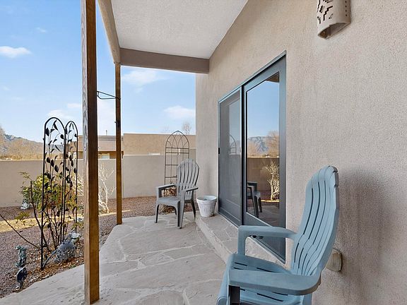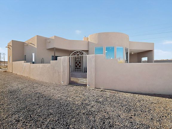 Don't miss this opportunity to own this custom 3 bedroom/2 bathroom, single level beauty in Rio Rancho. Sitting on a half acre lot, with no HOA , plenty of room for trailers or RV's, and Amazing mountain views! A beautiful private courtyard greets you as you arrive on the property. As you enter the home you'll appreciate the open concept floorplan and 12 foot ceilings along with the gas fireplace in the great room with its spectacular views of the mountains. The kitchen has granite tiled countertops, Alder cabinets. large walk-in panty and island with breakfast bar. A large primary suite with its own bathroom with double sinks and tiled bath surround along with a large walk-in closet make a perfect owners retreat. There are two additional bedrooms, a full bath and large laundry room.