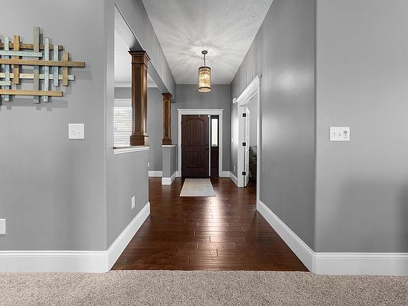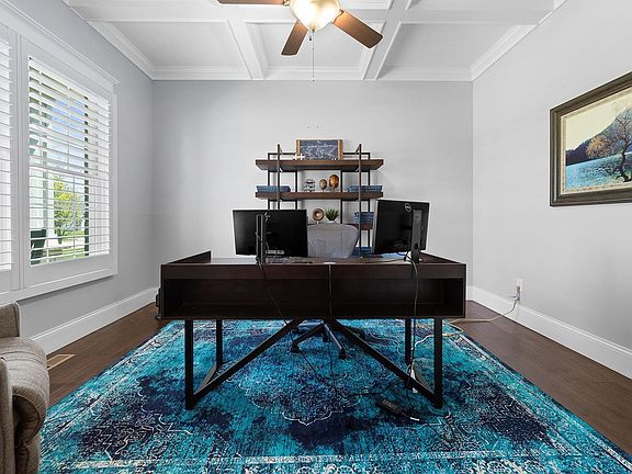Welcome home to this stunning executive retreat in the popular golf course community of Winding Creek! This 7-year-old 2 story home on a fully finished basement will have everything you need! 10 foot ceilings on the first floor, 9' ceilings on the 2nd floor and basement, custom moldings and trim, plantation shutters, home office space with coffered ceiling, 4' wide staircases, ample living area on THREE levels, zoned climate control, butler's pantry/bar for entertaining, a chef's DREAM kitchen with oversized gas cooktop, huge island, built-in oven/microwave and stone counters with custom cabinetry. A family foyer including a ½ bath and storage locker area connects to the 3-car attached garage. Upstairs you'll find a loft area for additional kid space, craft area, or extra home office space. Attached is the massive primary suite retreat with a spa-like bath zone with free-standing soaking tub and double-entry custom tiled shower, separate toilet closet, dual vanities, and closet with built-ins and plenty of linen storage. Three additional bedrooms and one bedroom with an ensuite bath. Nice laundry room upstairs with cabinetry and window! The basement boasts so much space with a guest room, full bath, kitchenette, family room, utility/storage room, and a home theater/home gym space. The ornamental metal fence frames the backyard with nice landscaping and a large patio area for outdoor entertaining! This community with an award-winning golf course, Coyote Crossing, and pool and playground is ready for your next lifestyle experience!
