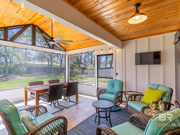 Prepare to be captivated by this zero entry (no steps!) ranch home that has been renovated from top to bottom, inside and out. $200K+ renovations include totally redesigned front elevation (including 180 mph garage door), certified roof, all new exterior hardie board siding, and brand new Anderson windows. New HVAC, hot water heater, AND metal storm shutters! Interior finishes throughout include a brand new high end kitchen and bathroom cabinets, new kitchen appliances, and washer and dryer. Totally renovated bathrooms, new plumbing and light fixtures, and much, much more, including smart thermostat, garage door opener, and security cameras. Beautiful screened porch addition with knotty pine ceiling provides almost 200 sq.ft. of peaceful outdoor living space that overlooks a lush treed back yard! Located off of Canal Road in Orange Beach, this amazing low-maintenance, move in ready home is just minutes from the Beach, Wharf Shopping Center, grocery stores, and countless fabulous restaurants! Excellent location close to all that Orange Beach has to offer! Seller is a Licensed Real Estate Agent. Buyer to verify all information during due diligence.