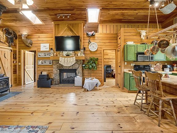 Only minutes from town, tucked away in a peaceful setting with inspirational views, this one-of-a-kind property offers the perfect blend of rustic charm and modern comfort. Sitting on nearly 16 acres, this stunning 32' x 100' barndominium pairs cozy living with endless possibilities for horses, livestock, or recreation. Step inside and you’ll find over 1,800 sq. ft. of inviting living space, complete with 3 bedrooms and 2.5 baths. A stunning stone see-through fireplace anchors the home, while vaulted ceilings, rich natural woodwork, sliding barn doors, and warm rustic touches create an atmosphere that feels both spacious and welcoming. Just beyond the back door, a barn with 7 horse stalls provides convenience and flexibility—whether you keep it as-is for your animals or repurpose it for hobbies, storage, or even a workshop. The land itself is equally impressive: fenced pastures, two spring-fed watering troughs, and hay production year after year. The property’s stocked, spring-fed pond makes for peaceful mornings by the water or an afternoon of relaxing fishing. Unrestricted by zoning or deed restrictions, you have the freedom to make this property your own. Raise animals, enjoy recreational space, or simply embrace the serenity of country living. All while being just minutes from shopping, dining, and schools. Scenic views, fresh country air, and a lifestyle filled with possibility—it’s all here. Don’t miss the chance to experience this hidden gem. Call today to schedule your private showing!