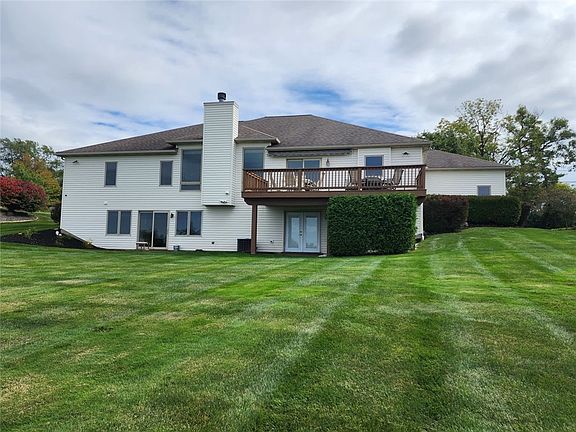 Impeccable Finazzo built home with lake views to cherish from sunup til sundown. A chefs delite!Stunning custom hickory kitchen with center island, designer back splash with sparkling granite countertops. Master suite with jacuzzi tub, shower and spacious walk in closet.Tray ceilings throughout this well appointed custom home.Fully finished lower level with bedroom/office, exercise area, family room, billiard table, shower bath, storage areas, walk up to garage, walk out to rear yard and exceptionally finished entertainment area. A one in a million/once in a lifetime/a view in a century - finally the home of your dreams can be yours!