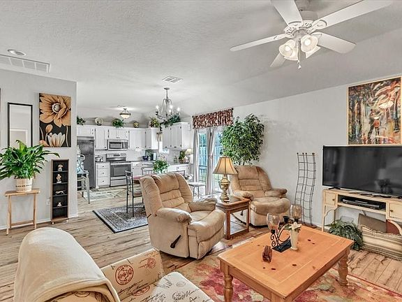 Step into a cozy living room with rich hardwood floors extending through the kitchen and hallways. The kitchen is a dream for any chef, featuring granite countertops, white cabinetry, and updated fixtures. Both bathrooms are designed for comfort, with a dual vanity sink in the primary bathroom for added convenience.