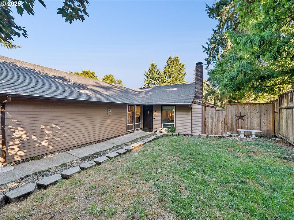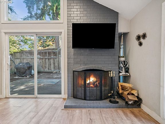 Rare Mid-Century style single level attached home in Beaverton! Remodeled kitchen with quartz, tile, open floorplan, wood burning fireplace, and tall vaulted ceilings. The primary bedroom has an ensuite bathroom with a slider to a private back deck. The exterior has a fully fenced backyard with two decks, front yard and an attached one car garage. With only one other home attached it gives you tons of privacy. Great neighborhood with private access to many trails across the street.