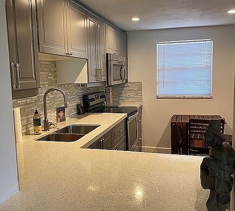 FOR SALE BY OWNER CALL AT 954-290-4790. Recently renovated, wood laminate floors throughout, tile in bathrooms and balcony. New kitchen appliances and beautiful quartz countertops. Gorgeous view from balcony. Ceiling fans in bedroom, living room and balcony. ON THE GOLF COURSE Gorgeous fairway view! 15 min. to beach. Quiet community. Optional: furnished/unfurnished. Includes sliding hurricane shutter on balcony.