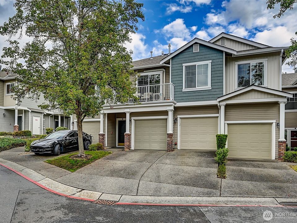 Sunny, west-facing upper-level, end unit condo, with A/C in a well maintained, gated community. Private covered entry has light-filled foyer that opens into spacious living & dining area, complete with cozy gas fireplace. Open-concept kitchen features pantry, breakfast bar & plenty of cabinet space - perfect for casual meals or entertaining. Primary suite offers large walk-in closet & stylishly updated ensuite bathroom. Second bedroom is conveniently located near a full bath - ideal for guests or a home office. You'll love the in-unit laundry with stacked w/d & added storage. Enjoy morning coffee or evening on private deck. Private garage, extra driveway parking, no units above or below you. Low HOA dues.Mins to 167, 405 & UW Valley Med Ctr