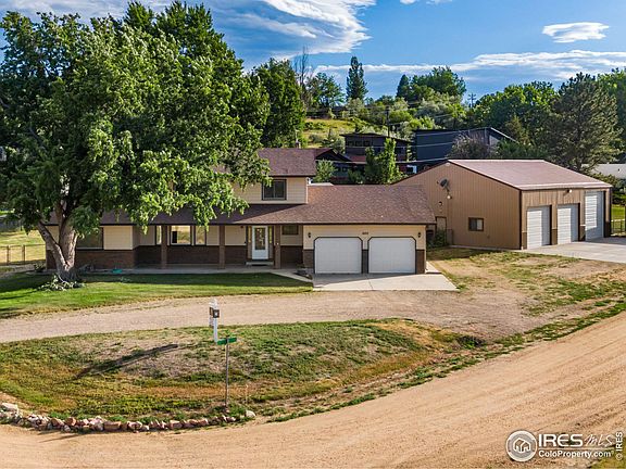 Hard to find, PERFECT setup for business owner needing parking, storage, large shop and no HOA! Bring your RV's, boats, or toys too. Want animals...done! Situated on a .59acre corner lot and outside City limits, this fantastic property features (4) detached outbuildings! The crown jewel being the 2118sqft heated shop w/ (3) oversized doors, a 52' deep bay, 6600lb Hydro car lift, air compressor, 50amp and 30amp service, and bathroom. The 2601sqft home has been meticulously maintained and updated throughout. Kitchen features granite counters, solid wood cabinets w/ under cab lighting and rollouts. Primary bedroom features (2) closets and attached updated bathroom. Sunken living room w/ gas fireplace and large game room for entertaining. Covered and protected back patio to relax and enjoy these Colorado evenings. Fully fenced backyard w/ dog run area and RV pad w/ water and sewer connections.