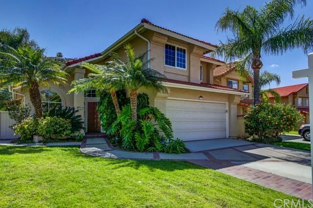 Come see this wonderful Fieldstone Classics home in the hills of east Yorba Linda. Sitting on one of the largest lots in the community, this property features a very private back yard with lush, mature landscaping; extensive stone and brick hardscapes, built-in BBQ island; custom-built storage shed; large, fully-covered patio with ceiling fans; and no neighbors behind you. It's truly a yard built for fun and relaxation. Inside features include: open & airy floor plan; vaulted ceilings; living room with a formal dining area; kitchen with Corian counters, greenhouse window, recessed lighting, and breakfast bar. Kitchen is open to the family room with fireplace, and surround speakers. There's a half-bath just off of the family room, and also a separate laundry room. Upstairs master bedroom has his and hers walk-in closets, vaulted ceiling, and ceiling fan. Remodeled master bath suite features dual-sink vanity, Travertine stone flooring, Travertine shower, & deep, soaking tub with Travertine tub surround. Three bedrooms are served by whisper-quiet whole house fans. Plantation shutters cover most windows. Garage has lots of built-in cabinets, and has a roll-up garage door. Yorba Linda Hi School. Walking distance to Box Canyon Park.