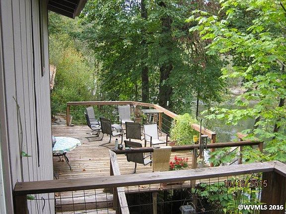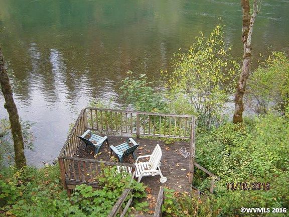 Accepted Offer with Contingencies. Private Lane with only 3 full time residents on the beautiful Santiam River. Open floor plan to sit and enjoy the river and wild life. Lower level has room to expand if needed. Attached 12x24 shop with single car garage and office. Detached shop 36x24. 2 Fenced in garden areas, one with Marion Berries, Raspberries, and Fig Tree. Pellet stove in living room with river rock accents. Wonderful location for full time living or if you are snow birds, come home to all river sports and relaxing in the sun.