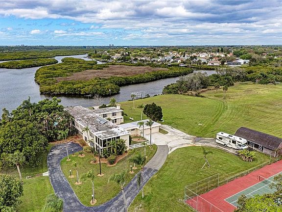 Once in a lifetime opportunity to own your own a piece of Bradenton history. Attention history lovers, visionaries and builders. Now is your chance to own this never before offered custom built 7,000+ sf Mid-Century Modern home on nearly 8 acres with over 600' of boat-able water frontage. Built in 1954, this home is a piece of Americana. The original owner was the developer for several historic Bradenton landmarks and the legendary Howard Johnson hotels. He designed this home in homage of these iconic hotels. If you are looking for a unique home, love Mid-Century Modern homes, or looking for a large private waterfront estate, then this is the home for you. After a match on the tennis court, spend your evening relaxing by the pool watching the sunset over the river while enjoying a glass of wine from your personal wine cellar. On the weekends boat, kayak or fish right from your back yard. No more going to the marina. Looking for an equestrian estate? There's a horse barn. Want a workshop, parking for the toys, boat, and RV? Got that too. All of this located on a secluded 7.8 waterfront acres overlooking the Braden River with sweeping views. Short boat ride to the Manatee River and to the Gulf. Quietly tucked away from the world but only miles from the beaches, Bradenton, Lakewood Ranch or Sarasota. Your own private country estate hidden in town. No HOA or CDD fees. Do not miss this rare opportunity!