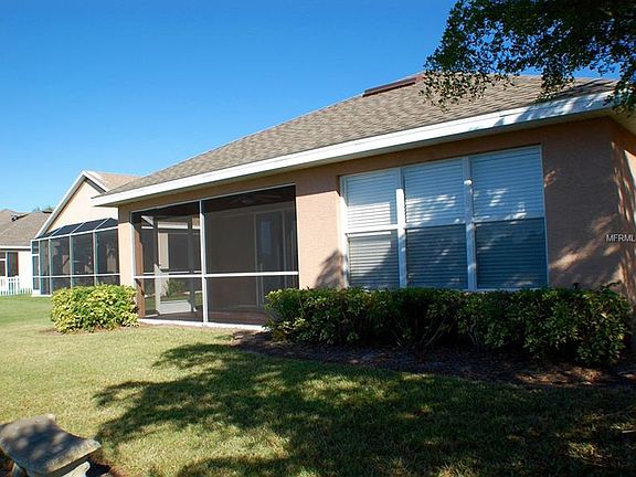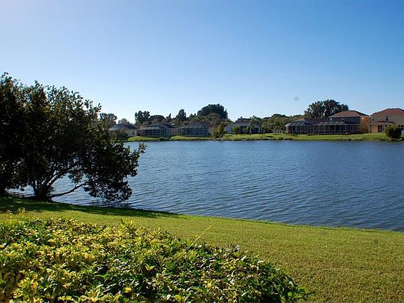 Lovely 2 bedroom, 2 bath home with a den which over looks a large lake. This former model home has all the bells and whistles, to include; upgraded cabinets with Corian countertops in kitchen and baths, customs cabinets in laundry room, tray ceilings with integrated stereo surround sound speakers throughout the house, sliding glass pocket doors which open up to the screened lanai, smoke and carbon monoxide detectors, upgraded carpeting and padding and much more.