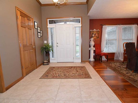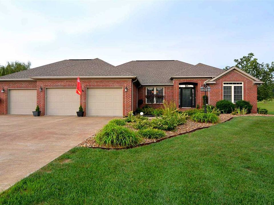 Outstanding executive style full brick ranch on almost an acre in Hausmann Manor Subdivision. This home features gas fireplace, full wall of windows/sliding doors to outside entertainment area, soaring vaulted ceilings in the great room, granite and stainless steel gourmet kitchen with beautiful cabinetry, 3 car garage, loads of storage and a stunning master suite with whirlpool tub, separate shower. This home has a split bedroom design and is elegant, comfortable and inviting. Beautiful hardwood doors and trim throughout. Full sprinkler system for both front and backyards and beautifully landscaped. This home is just off St. Phillips Road, is move in ready, and waiting for you! Stop looking and start living today. 2-10 Home Buyers warranty provided by seller.