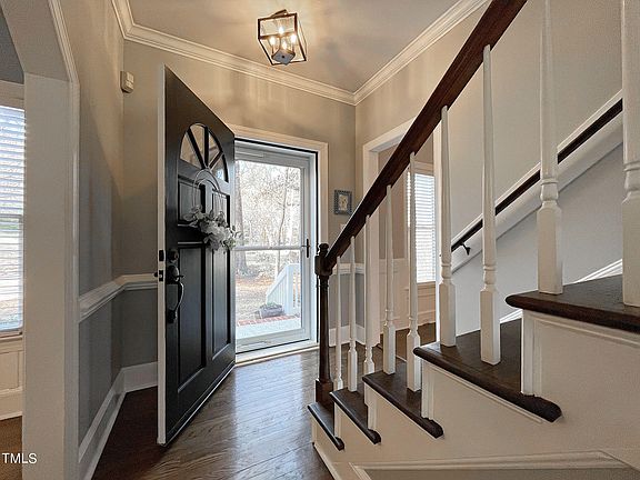 You will fall in love with this beautifully updated & immaculate home with bright open floor plan on a private culdesac lot! Entry foyer with hardwoods and crown molding. Dining room with hardwood, wainscot and crown molding. Large Family room with white wash brick fireplace, hardwoods, wainscot, fan and French doors to huge deck! Kitchen with LVP flooring, stainless appliances, granite counters, 42'' cabinets, backsplash, sunny breakfast nook with bay window & banquette plus pantry. Large Primary bedroom with fan, walk-in closet. Spa like Primary bath with vaulted ceiling, dual vanity, skylight & Lux walk-in tile shower with bench! Great Bonus room for family fun or movie night!! Large Laundry room with cabinets and folding area. Mud room LVP flooring has separate door from covered friends porch. Amazing backyard is great for entertaining with firepit, deck and seating areas!