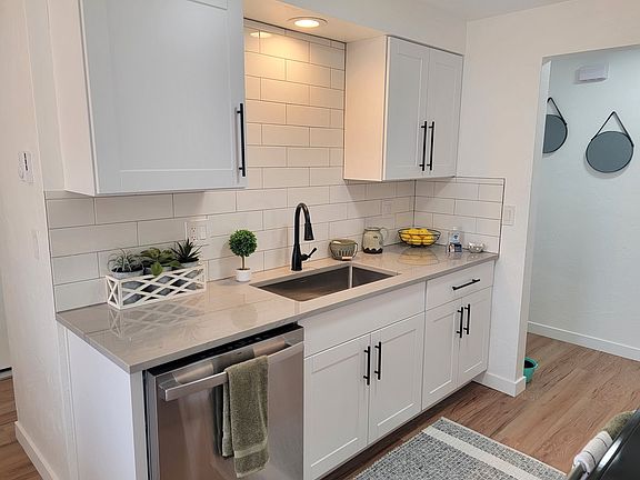 - Features: Dishwasher, Disposal, Free Standing Range, Quartz, Vinyl Floor