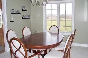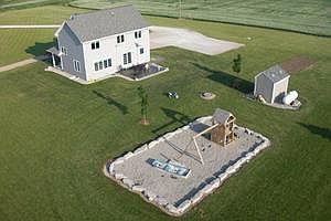 Newer home set off a paved road on the hill with 5 acres. All bedrooms, 2 bathrooms and laundry room upstairs, Main level is Kitchen and dining area, Formal dining room and living room, full finished basement with a staircase to garage plus the house. Garden shed, play scape and fire pit in back yard. 2 car attached garage. House is spayed foamed very easy to heat.