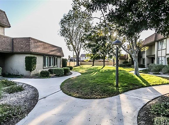 This highly desirable home is fully upgraded and turnkey condition with double pane windows. Wide open concept with accent of mirrored wall, ceiling fans and recessed lights. Upgraded kitchen and bathrooms have granite counter tops. Huge private covered patio with wood deck is located between main house and 2 car garage. Greenbelt view and short walk to community pool and club house. This is great opportunity to own a home in La Palma with top rated schools of Walker Jr. High and Kennedy High School/Oxford Academy.