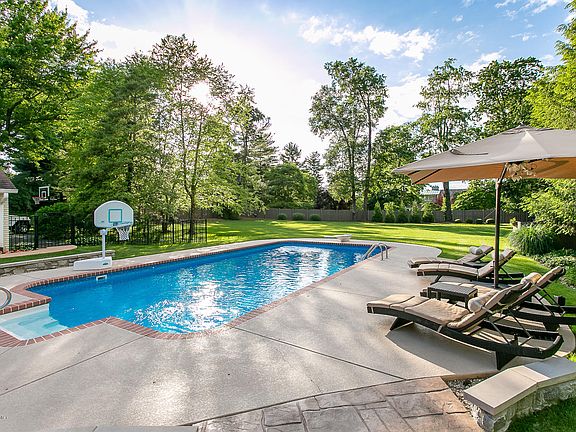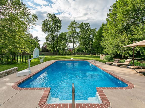 Are you looking for a trip to paradise this summer? You don't have to go far to find this 5 BR 4.5 BA oasis. Situated on a level 1+ acre corner lot, this home was built for entertaining but also for peaceful serenity. Relaxing poolside by day and lounging by the fire in the outdoor covered family room by night to hosting friends and family for celebration and fun and using the huge backyard, this is the spot! A generous foyer leads to a light-filled LR w/fireplace to a dining area that is open to both a family room w/ fireplace, vaulted ceilings and custom bookcases and a dual-Island kitchen with plentiful cabinetry and high-end stainless appliances including a warming drawer. 1st floor laundry w/storage is off the kitchen and just by the French doors leading to the pool, a great wet bar! The bedroom wing of the house on the 1st fl has a BR/full bath on the way to the super master BR suite w/adjacent sitting/room office, full bath w dual sinks and French doors allowing for spectacular views of the pool and yard beyond. Upstairs, 3 BR's, 2 beautifully renovated full baths + another family room. In the basement, lots of storage and yet another family room! Attached 2 car garage, lots of additional parking for friends and family too!