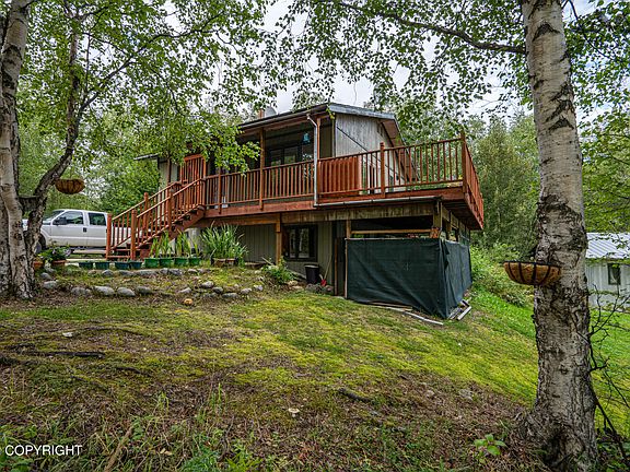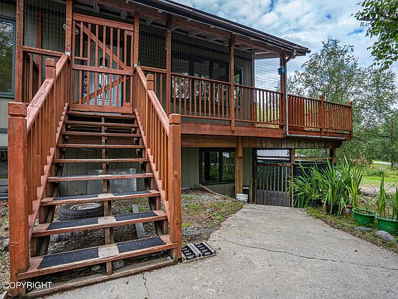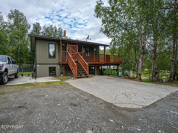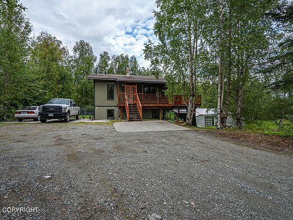 This 2 story home has lots to offer. Home features a remodeled kitchen, HUGE pantry, living space upstairs and downstairs, master bedroom upstairs, newer flooring, a wrap around porch connecting to a large deck, and an oversized shop/barn! Shop also includes an unfinished living space that could be used for an office or perhaps MIL or rental space. Property allows for horses and has a seconddriveway to the garage which allows for plenty of parking including RV parking. The main house has a slab started for a potential garage addition or home addition perhaps. Large dog kennel with privacy fencing under the deck for convenience during the long winters. Outside also features a fire pit, fenced yard and a chicken coop for those wanting fresh eggs! Location is great for trails and is less then 10 minutes from Turners Corner leading to Hatcher Pass and other outdoor recreation. Only 10 minutes to downtown Wasilla, making all amenities just a quick trip away.