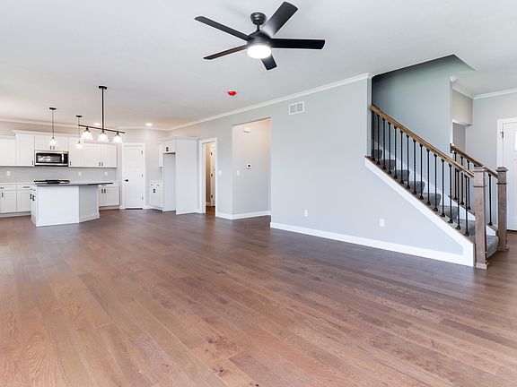 New construction North facing home in the Grove built by Doud Builders. Large 4 bedroom home! Master suite features massive walk in closet and stunning full bath. Second floor laundry, All bedrooms have large closets. Hall bath features separate shower/tub room and double sink vanity. Main floor features a full bath off the garage and a locker drop zone. Large eat in kitchen with soft close cabinet drawers, walk in pantry, stove with range hood, built in microwave in the oversized island. Flex room on main floor that could be used as a bedroom, office, dining room! finished lower level with family room, bedroom and full bath with lots of storage. Front yard sodded and a large covered deck on the back with a 3 car garage! Picture of similar home.