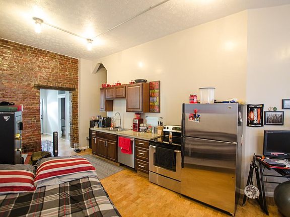 Concrete countertops, cork flooring, fridge, oven and dishwasher. Large storage area in basement with laundry hook ups and easy on street parking. Tenant pays utilities, Large private deck and shared rear yard. 12 foot ceilings and concrete countertops, fully equipped kitchen and giant windows. 2 blocks off butler st in corner building.