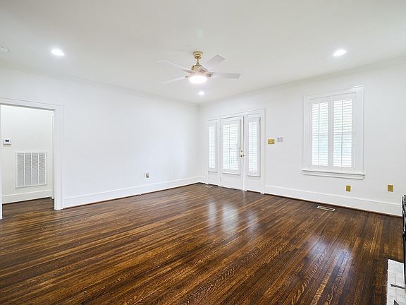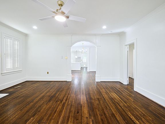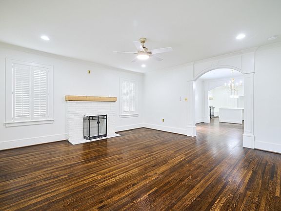 Refinished hardwood floorsModern kitchenDecorative fireplacePrivate backyard oasisBack covered porchCustom cabinetsKitchen corner bench