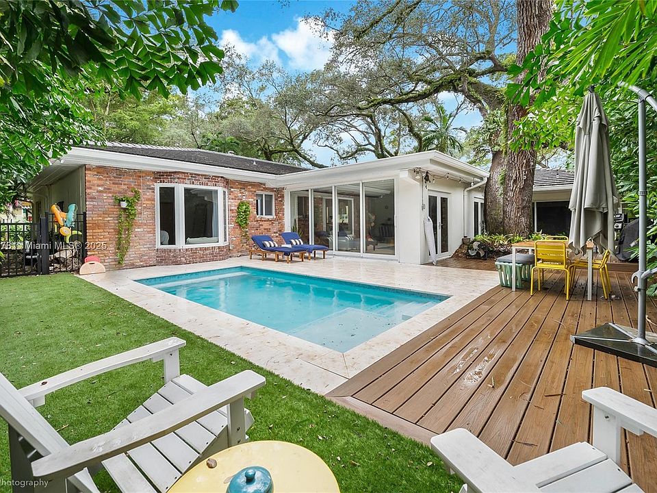 Welcome to your dream home! This 2,700 sq ft, 4-bed, 3-bath gem was fully remodeled with European design. The expansive ~1,000 sq ft open living area features high ceilings, exposed beams, and brick walls, giving it a unique charm. Brand new European cabinets and appliances in the kitchen. Lush greenery views throughout all the windows. Outdoor oasis with saltwater pool shaded by centenary oaks. The house is in a beautiful area, great for walks, across from a park with a playground and dog area, and near the Grove, Gables & South Miami. Top school district. One-car garage with laundry and storage + driveway for 2 cars. Ring security system, smart thermostat and appliances. Custom built walk in closets. Rent includes gardener, pool & pest service. Available Dec 1.