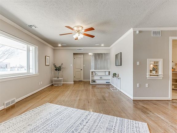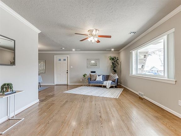Welcome home to 5101 N Youngs Boulevard, a well-loved ranch-style home nestled in the Wileman 4th neighborhood that features beautiful hardwood floors and tons of natural light flooding through the large living room picture window and throughout the home. Pulling up to the home you'll find a manicured front yard with lots of space to put your touch on it. The living room has built-in bookshelves, large picture windows, and surround sound and it flows into the dining area. The kitchen has under-counter lighting, ample storage, a refrigerator, and a gas stove for all your culinary needs. The primary bedroom has a bathroom ensuite that has a pedestal sink and shower. All secondary rooms have great space, ceiling fans, and wonderful natural light. The hallway bathroom features double vanities and a tub/shower. Fresh paint throughout. Outside, you'll find a backyard oasis with an 8-foot privacy fence, covered patio, outdoor speakers, and a meticulously maintained lawn thanks to the sprinkler system with a rain detector and Hydrawise smart app controller. Conveniently located near shopping, entertainment, dining options, and easy access to highways. This home also features an underground storm shelter and a newer HVAC system for your peace of mind. Don't miss out on this fantastic opportunity to own a beautiful home in a prime location!