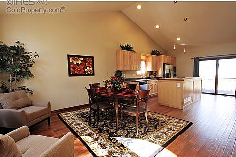 Super home on private lot in south central Fort Collins. Master bedroom with walk in closet, updated bathroom. Amazing mountain views from balcony off master and deck off kitchen. Lots of updates, including wood floors in kitchen, dining & great room. New gas fireplace in '12, furnace & water heater in '09, roof in '14. Huge yard great for gardening, w/ pine & fruit trees, backs to green space. Paved path to north allows easy access to MAX station. Open House Saturday , April 25, 11am-2pm