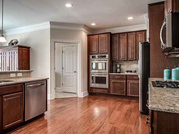 Recently inspected & repairs made this like new Full Brick home will not disappoint!!! 3 car garage, almost 1/2 acre lot, full hardwoods & Guest Suite on main. Kit has maple cabs, double ovens, & stainless appls. ALL full Baths & Kit have granite counters. Tile floor in all Baths. Master has sitting area & 3 WI closets. 5 true bedrms AND a bonus room. Tankless water heater & full irrigation.