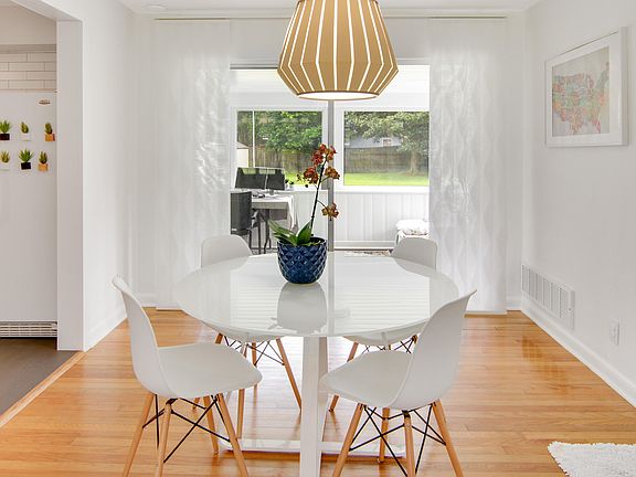 This beautiful and well maintained home is sprawled on a double lot at an impressive .47 acres. The modern updates and an endless amount of family space inside and out will take your breath away. The exterior has a clean and well-maintained appearance which includes a well- manicured lawn, new roof replaced in 2016 and plenty of yard space to use as your heart desires.Step inside to experience a living space with an open concept and a mid- century modern flare. You will find impeccably kept hardwood oak floors throughout and Eco- friendly wood shutters covering a wall of windows for energy efficiency and durability. The renovated kitchen is one of the many highlights of this amazing home boasting white quartz counter tops, porcelain tile floors and new and like-new kitchen appliances.