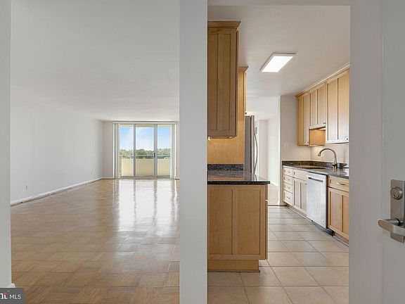 Bright and Beautiful 2-bedroom, 2 full bath corner unit with over 1,450 square feet of living space and located on the 17th floor of the building. The unit has updated kitchen with stainless steel appliances and granite counters. Open concept living areas include solid oak hardwood flooring, large bedrooms with an abundance of walk-in closet space, refreshed bathrooms and a large balcony looking west towards Kenwood Country Club and views of Tysons Corner! Large garage parking space that can accommodate two cars (tandem). The building offers 24 hour concierge, pool, gym, outdoor picnic area and a party room. Located near major roads Crescent Trail, and metro. Walking distance to Whole Foods, Friendship Heights shopping and Downtown Bethesda shops and restaurants. Utilities included in condo fee.Masks and social distancing in the building.