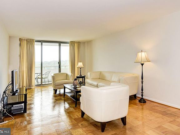 A beautiful bargain! Sun-filled 1336 SF apartment with elegant foyer, gracious living and dining rooms for entertaining, table space kitchen, master bedroom with en suite shower/bath; second bedroom is king size, guest bath, multiple roomy closets - all in comfortable layout. Spacious balcony; deeded parking space; extra storage; outdoor pool and gas barbecues; recently renovated lobby & corridors. Cross River Road to bus stop , board Bus T-2 , ride 7 minutes to Friendship Heights Metro. Just North of THE KENWOOD are Whole Foods, bistros, convenience stores. Minutes by car to downtown Bethesda and Friendship Heights Metros, movies, fine shopping and dining.