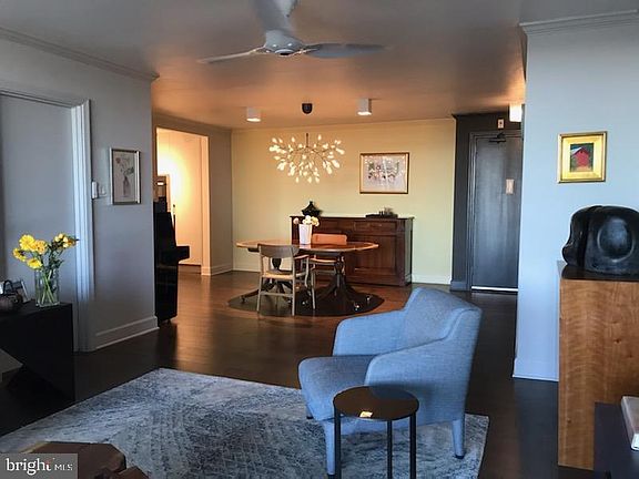 New price! Welcome to a superbly and thoroughly restated upscale home at The Kenwood.. The end result is a one-of-a-kind, elegant, and ultra-efficient marriage of design and function. This is an East facing unit, with plant friendly balcony and a view toward the gardens, Little Falls Park, Somerset, and the National Cathedral. The charcoal-stained red oak wood flooring unifies all the living and sleeping areas. The kitchen was expanded and has been fitted with Poliform cabinetry from Italy, appliances by Miele and Sub-Zero, and Dekton countertops, and custom lighting. Closets have sliding opaque glass doors, lighting and electrical outlets, and have been outfitted with built-ins. Ceiling fans and a Moooi chandelier complete the picture. See disclosures for more detailed narrative and credits and sources for the most impressive improvements ever made in a Kenwood condominium. (All work was completed in 2019. Kitchen appliance manufacturers' warranties transfer. )